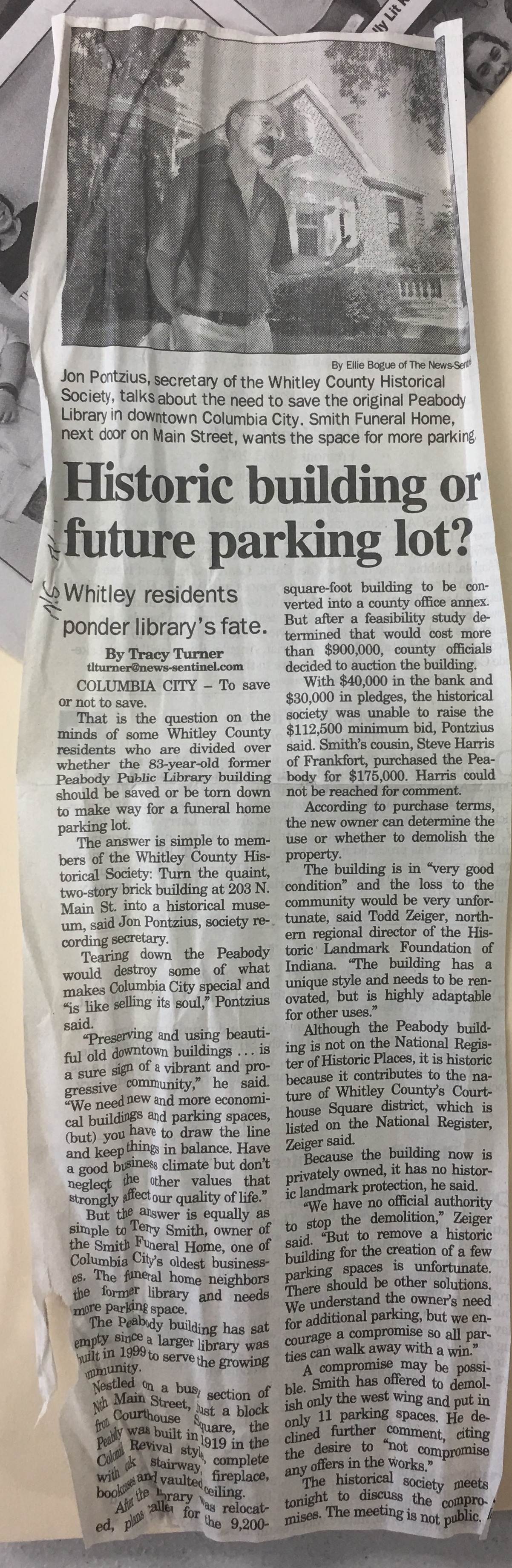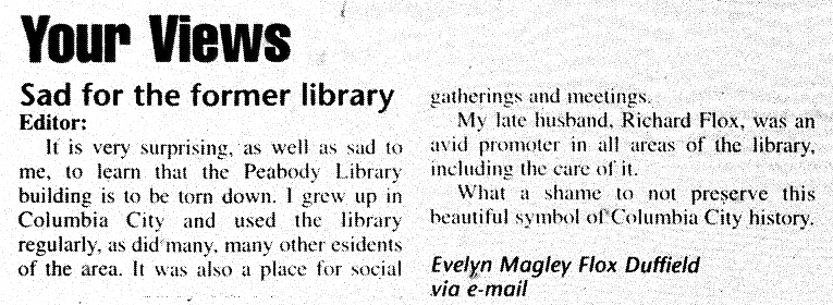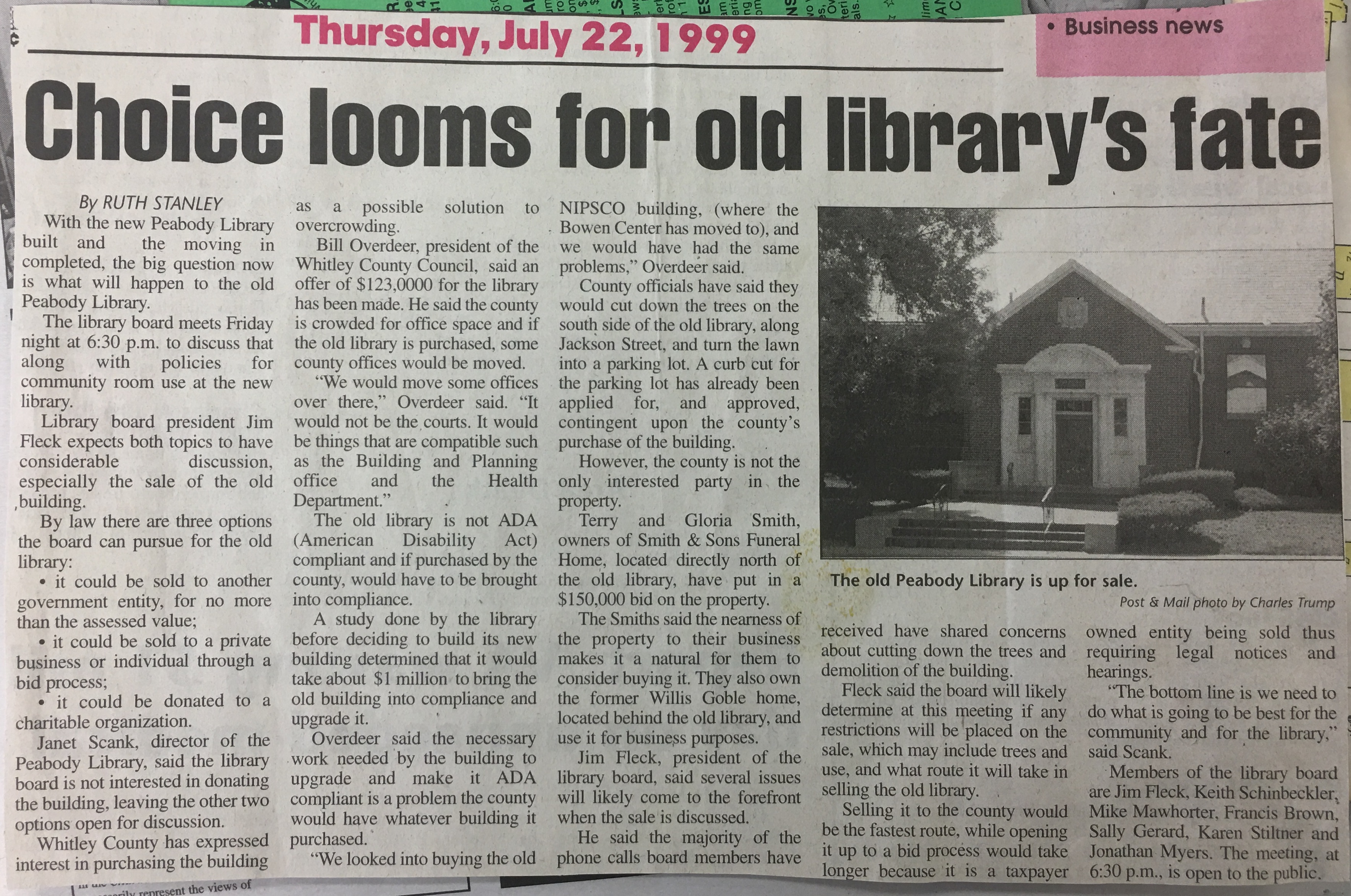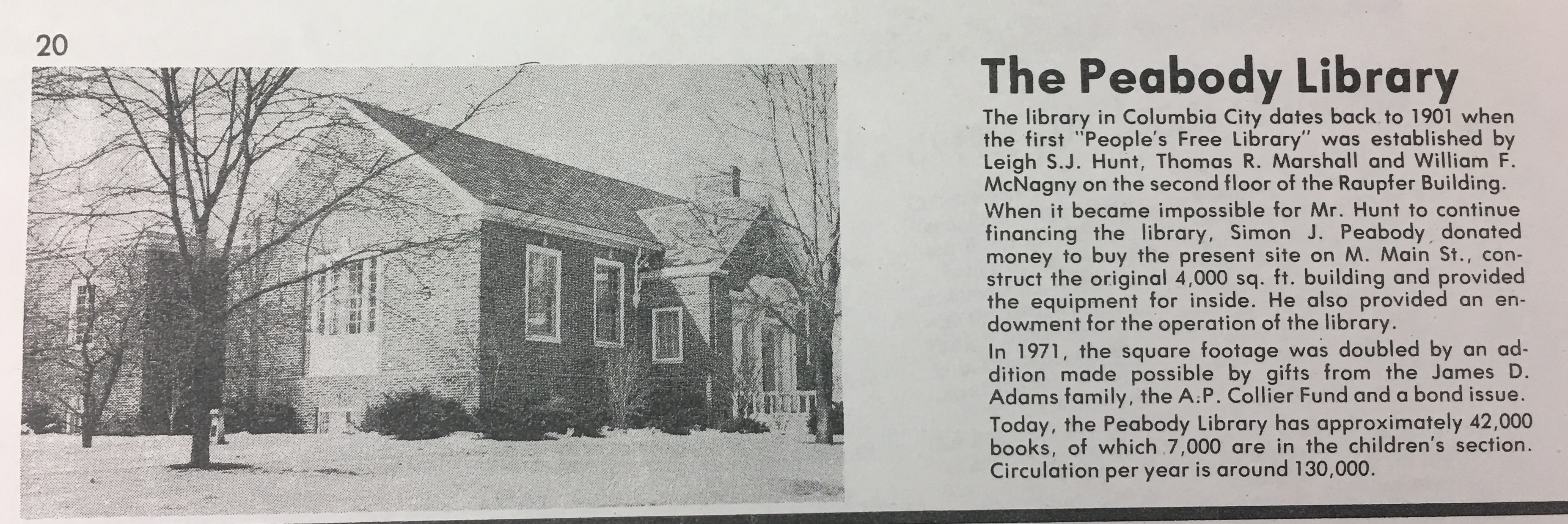 Constructed in 1917, and torn down in 2002, the original Columbia City Peabody Library has been near and dear to many hearts for 85 years.