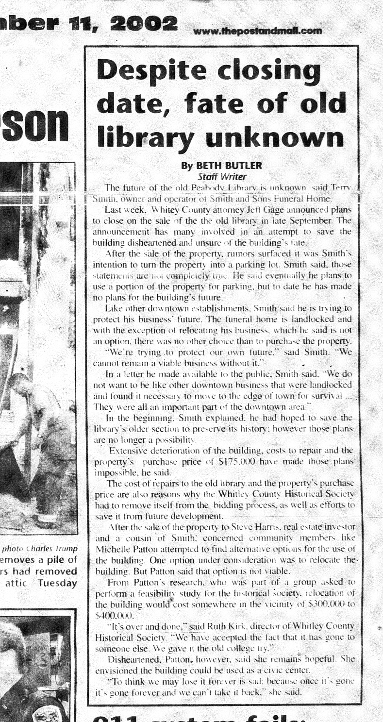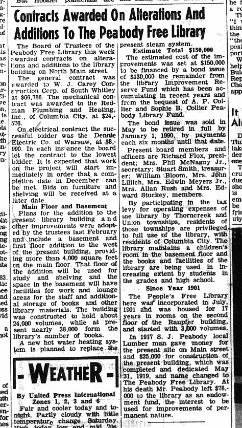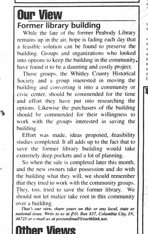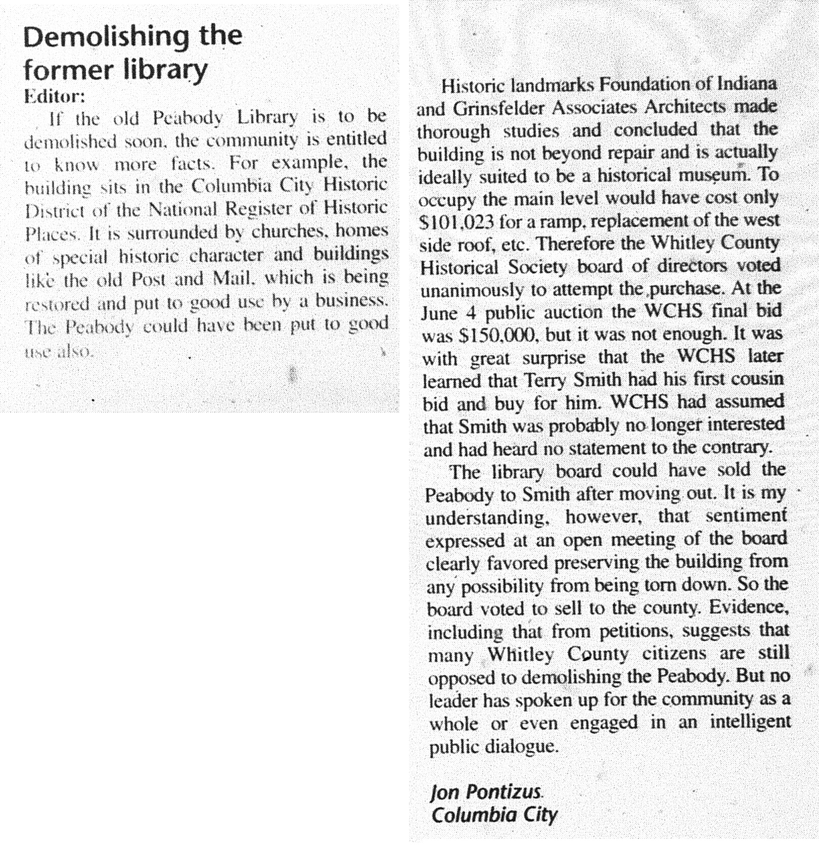 Constructed in 1917, and torn down in 2002, the original Columbia City Peabody Library has been near and dear to many hearts for 85 years.